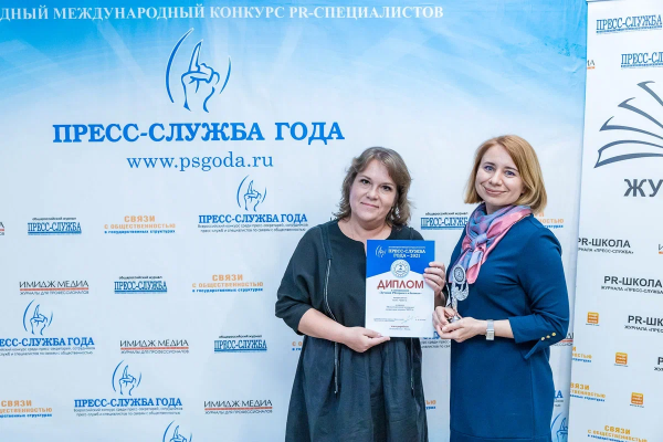 Награждение победителей состоялось в Москве. Приз получали наши коллеги: руководитель Дирекции бренда Надежда Вахатова и пресс-секретарь Надежда Андреева.